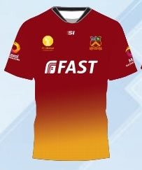 The Bready cricket club men's playing shirt comes in a maroon and yellow colour with a Bready Cricket Club Logo on the left chest and Shorts Hub brand logo on the right chest of the Shirt.