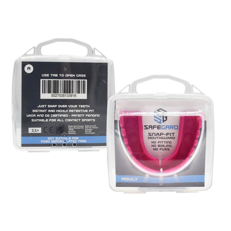 Safegard Snap Fit Mouthguard is designed for instant protection, making it an ideal choice for various sports, including ball sports, stick sports, and combat sports. Developed by the creators of the Self-Fit and Power-Fit mouthguards, the Snap Fit offers convenience and immediate use without the need for boiling or molding.