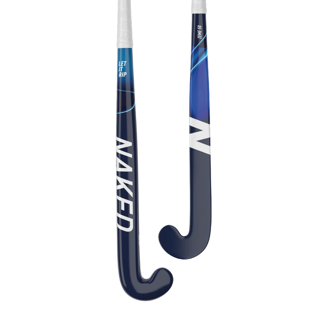 Naked Zeme 50 Hockey Stick 2024. Designed with 50% Toray® carbon, this stick offers reliable performance and durability for players at all levels.